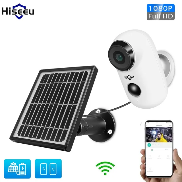 Hiseeu 1080P WIFI Battery Camera IP 2MP Outdoor Rechargeable Wireless IP Camera PIR Detect Waterproof Solar Panel