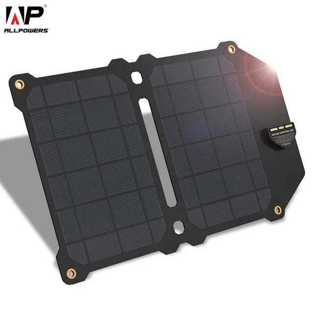 ALLPOWERS Solar Panel 10W 5V Solar Charger Portable Solar Battery Chargers Charging for Phone for Hiking etc. Outdoors.