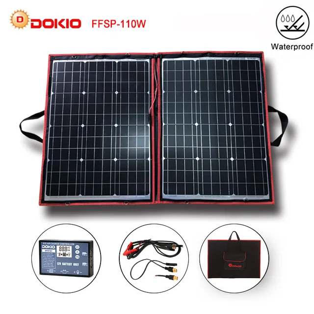 Dokio 100W (50Wx2Pcs) 18V Flexible Black Solar Panels China Foldable + 12V Controller 110 Watt Panels Solar For Car Battery