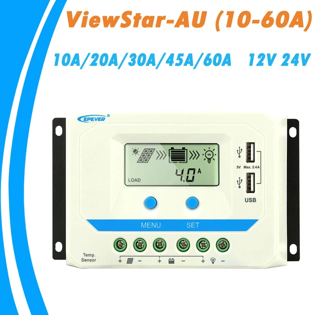 [33051413107]EPever 60A 45A 30A 20A 10A Solar Charger Controller 12V 24V Auto Backlight LCD Solar Panel Regulator Dual USB ViewStar-AU Series