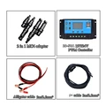 Package list2 X Solar Panel ONLYOr2 X Solar Panels1 X Alligator cable 3m/118in 2.5mm (optional)1 X pv cable 3m/118in 2.5mm (optional)1 X Solar PWM Controller(optional)1 X 2 in 1 adapter